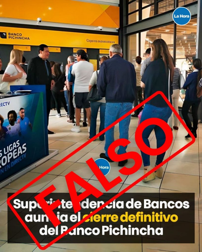 Simultáneamente, circuló en redes sociales información falsa que aseguraba un cierre inminente del banco, acompañada de artes con logos de medios. Tanto la entidad financiera como la Superintendencia de Bancos debieron desmentir públicamente cualquier clausura o intervención oficial.