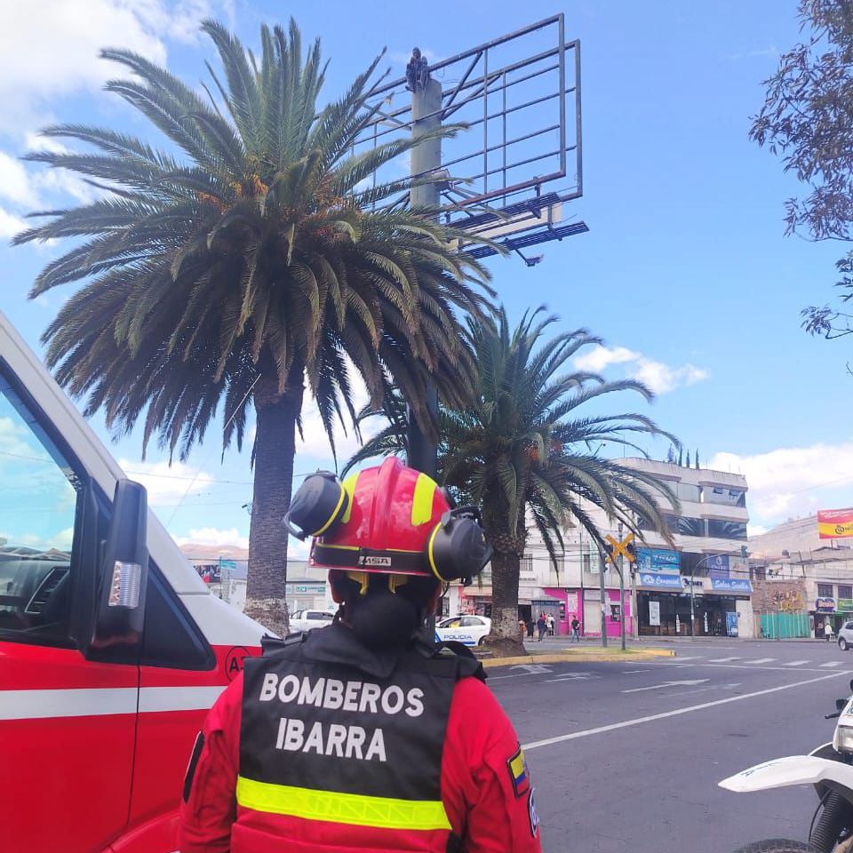 La rutina del centro de Ibarra se alteró la tarde de este sábado 13 de septiembre. En la intersección de la avenida Mariano Acosta y Fray Vacas Galindo, decenas de miradas se alzaron hacia lo alto: un hombre había escalado una valla publicitaria, y permanecía aferrado a su estructura metálica.