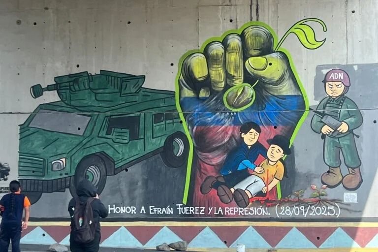 Para los comuneros, el mural no era únicamente una expresión artística, sino un símbolo de lucha y memoria histórica. En ese mismo punto, donde se levantaron barricadas durante las protestas, falleció Fuérez, lo que otorga al sitio un significado especial.