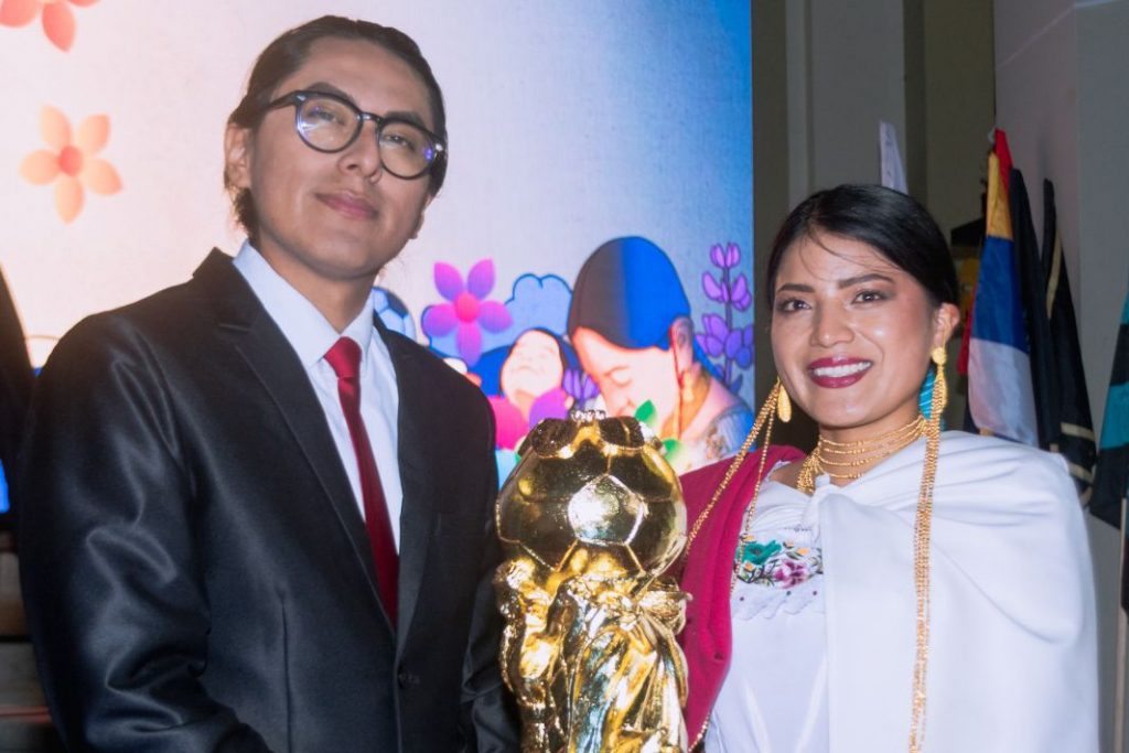Uno de los momentos centrales del lanzamiento fue la revelación oficial de la copa y el balón del campeonato indígena. El trofeo fue elaborado por el artista kichwa César Farinango, utilizando madera de cedro y seike, y recubierto con pan de oro de 24 quilates, aplicando técnicas tradicionales de la antigua Escuela Quiteña.
