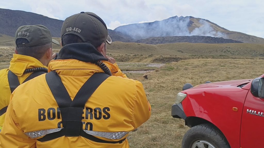 “Hemos establecido un campamento en una zona segura, frente al incendio, para abastecer de hidratación, alimentación y logistica a nuestro personal. Aquí pernoctaremos hasta liquidar por completo el fuego», manifestó Geovanny Zamora, Comandante del Cuerpo de Bomberos de Cotacachi y jefe del operativo.