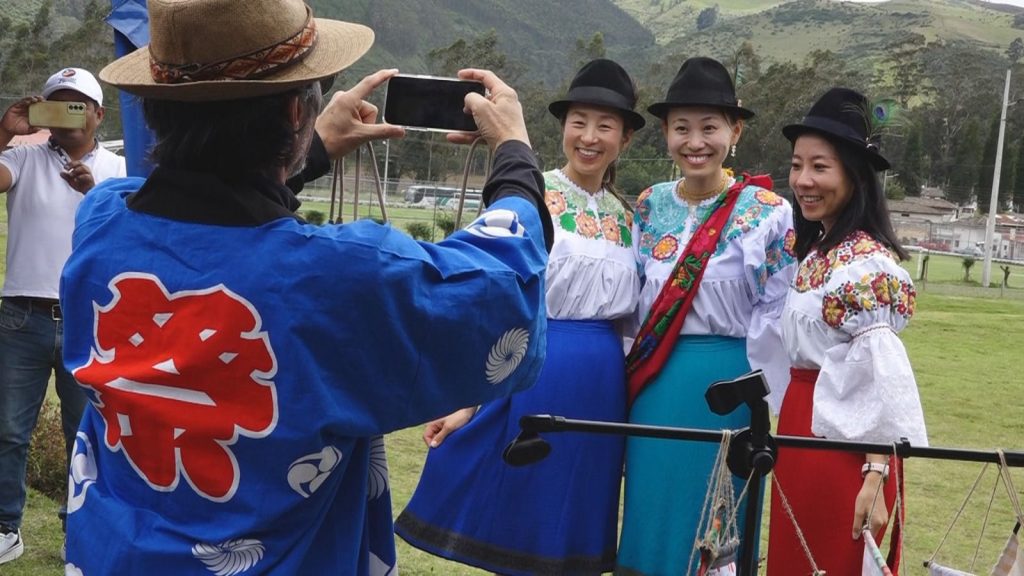 La vestimenta se convirtió en uno de los ejes simbólicos del encuentro: mujeres imbabureñas dejaron momentáneamente el anaco y las blusas bordadas para vestir kimonos, mientras visitantes japonesas lucieron indumentaria tradicional kichwa, en un ejercicio de intercambio cultural visible y participativo.