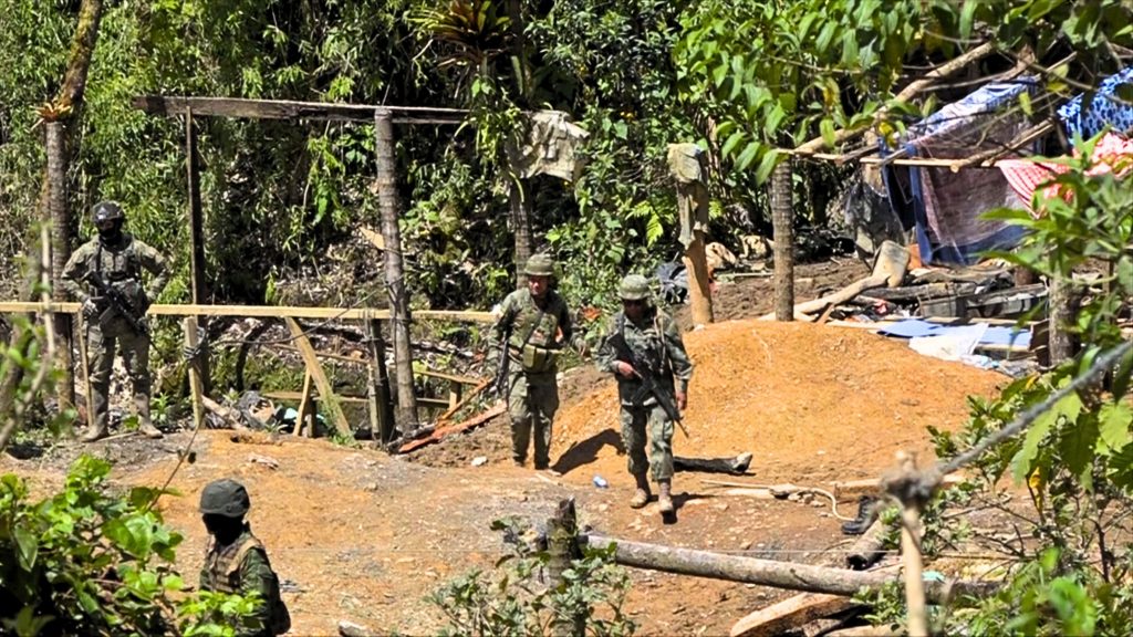 «En la parte alta de mina vieja encontramos un campamento con capacidad para 600 mineros y una red de poleas con dirección al sector de Río Verde», manifestó Jorge Luis Tello, comandante del Batallón de Infantería 31 Andes.